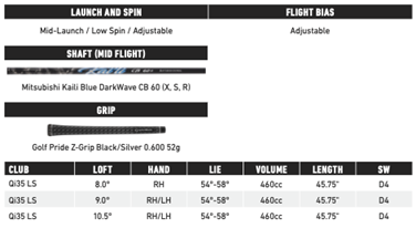 QUEST FOR LAUNCH Qi35 LS has our lowest CG projection with incredible MOI creating efficient launch and spin over a larger area of the face.